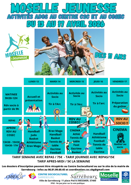 Où : selon la période Moselle jeunesse peut se dérouler au centre socioculturel, à la Zone de loisirs, au Cosec …